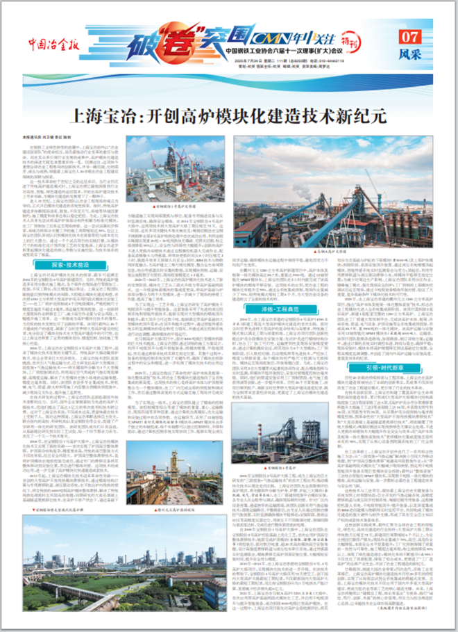 在鋼鐵工業(yè)綠色轉(zhuǎn)型的浪潮中,上海寶冶始終以“冶金建設(shè)國家隊”的使命擔(dān)當(dāng),肩負(fù)著推動行業(yè)變革的重任與使命。而在其眾多引領(lǐng)行業(yè)發(fā)展的成果中,高爐模塊化建造技術(shù)的演進(jìn)無疑是濃墨重彩的一筆。回溯過往,這項如今重塑全球冶金工程格局的創(chuàng)新技術(shù),并非一蹴而就,它的萌芽、成長與成熟,伴隨著上海寶冶人20余載在冶金工程建設(shè)領(lǐng)域的深耕與探索。