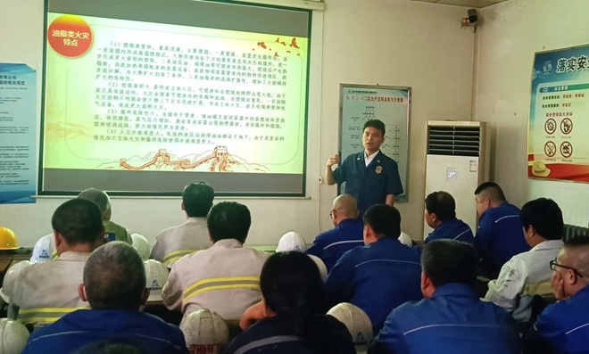 在實踐技能授課中,由津西股份保衛部消防大隊專員進行滅火實踐演示,通過滅火器、消防水帶、空氣呼吸器等常見消防器材,以“理論講解+現場演示”相結合的方式,摘要詳細講解“一提、二拔、三握、四壓”等操作要領和口訣,并指導參訓人員實踐嘗試,親身體驗消防設施設備的操作過程,進一步加深對消防知識的理解和記憶,在實踐中掌握防災減災知識和技能。