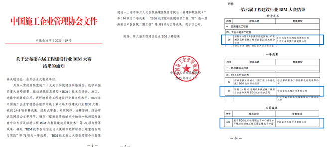 據(jù)悉,由中國施工企業(yè)管理協(xié)會主辦的全國工程建設(shè)行業(yè)BIM大賽是國內(nèi)最具影響力的BIM賽事之一,賽制完善,行業(yè)內(nèi)知名度高。本屆大賽覆蓋建筑、交通、能源、市政等全領(lǐng)域,共吸引了包括中建、中鐵、中交、中電、中核、中冶等數(shù)十家央企和眾多地方龍頭建工及能源企業(yè)在內(nèi)的1200余家單位報名,提交了2543項作品參與評選,競爭激烈。經(jīng)過初賽網(wǎng)絡(luò)評審、決賽現(xiàn)場答辯和專家審議,最終選出特等成果20項、一等成果71項、二等成果190項、三等成果588項。