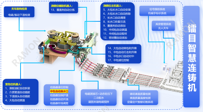 還在為高溫車間招工難、人工操作失誤斷產、生產效率上不去發愁?鐳目獨家研發的 RAMON 機器人更換中包浸入式水口及加保護渣系統,專為解決鋼廠痛點而來。