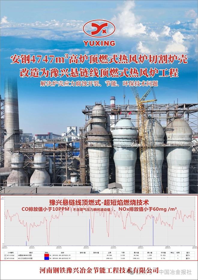 安鋼4747m3高爐小拱頂熱風爐切割爐殼改造為豫興懸鏈線頂燃式熱風爐后優(yōu)勢凸顯