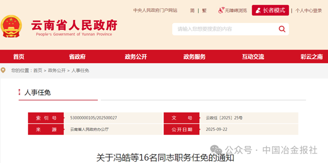 9月22日,云南省人民政府公布了16名同志職務(wù)任免的通知。