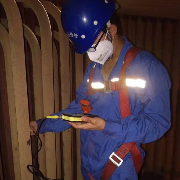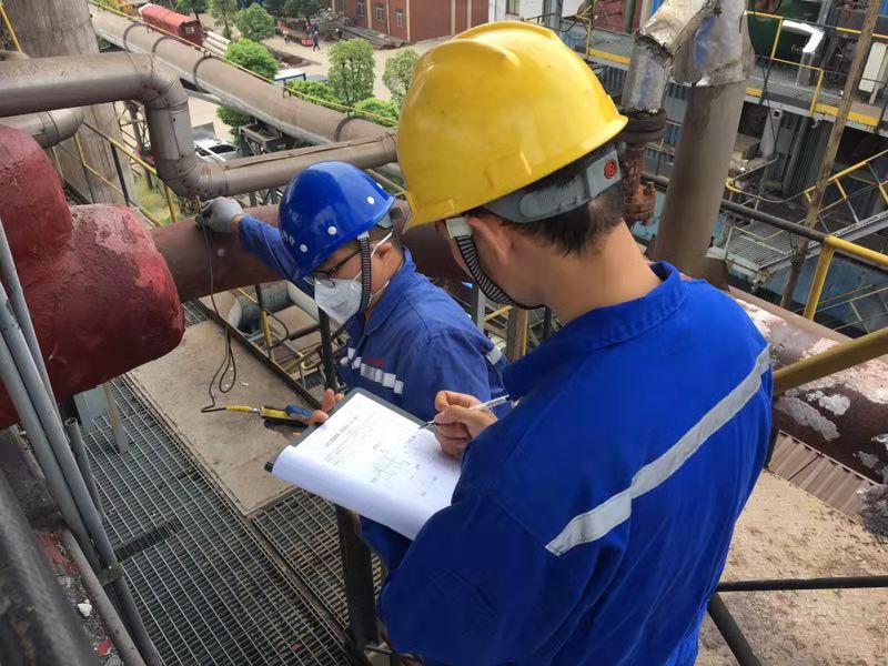 馬鞍山市鍋檢所工作人員正在檢測鍋爐主蒸汽管道