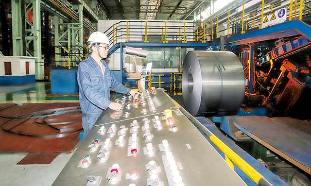 上半年,攀鋼釩冷軋廠通過強化生產過程控制,優化生產工藝參數,開展質量攻關等舉措,使產品質量滿足用戶需求。特別是該廠1號鍍鋅線升級改造后,產品質量指標均滿足彩涂基板性能要求,為攀鋼調整產品結構、擴大彩涂板市場占有率奠定了良好基礎。圖為15日,該廠鍍鋅作業區職工曲振華在1號鍍鋅線入口開卷作業。