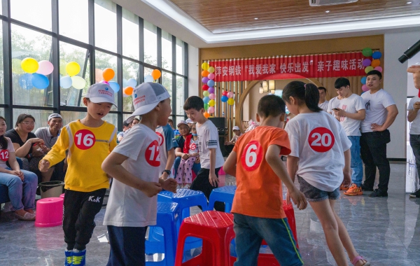 感受鋼鐵工業的生態美景后,20個家庭返回企業文化展示廳,開始親子活動。“搶凳子”游戲考驗的是快速反應能力,音樂一停,誰搶到了凳子就繼續下一輪,否則遺憾出局。活動現場,伴隨著動感的音樂,大人、小孩分組,四個組玩下來,整個現場樂翻天;“毛毛蟲大躍進”游戲中,小朋友每五人一組騎在毛毛蟲上,從起點至終點往返一次,用時最短者為勝。游戲過程中,只見紅、藍兩條“毛毛蟲”在大伙“一、二,加油”的吶喊聲中,加速前行。終點線上,獲勝的一組小朋友開心地撲向媽媽的懷抱,滿臉的驕傲。這樣快樂的時光家長們自然不會錯過,不約而同地用手機記錄下孩子童年的美好。