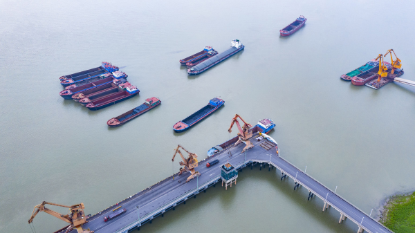 方大九鋼碼頭發(fā)貨船只往來穿梭