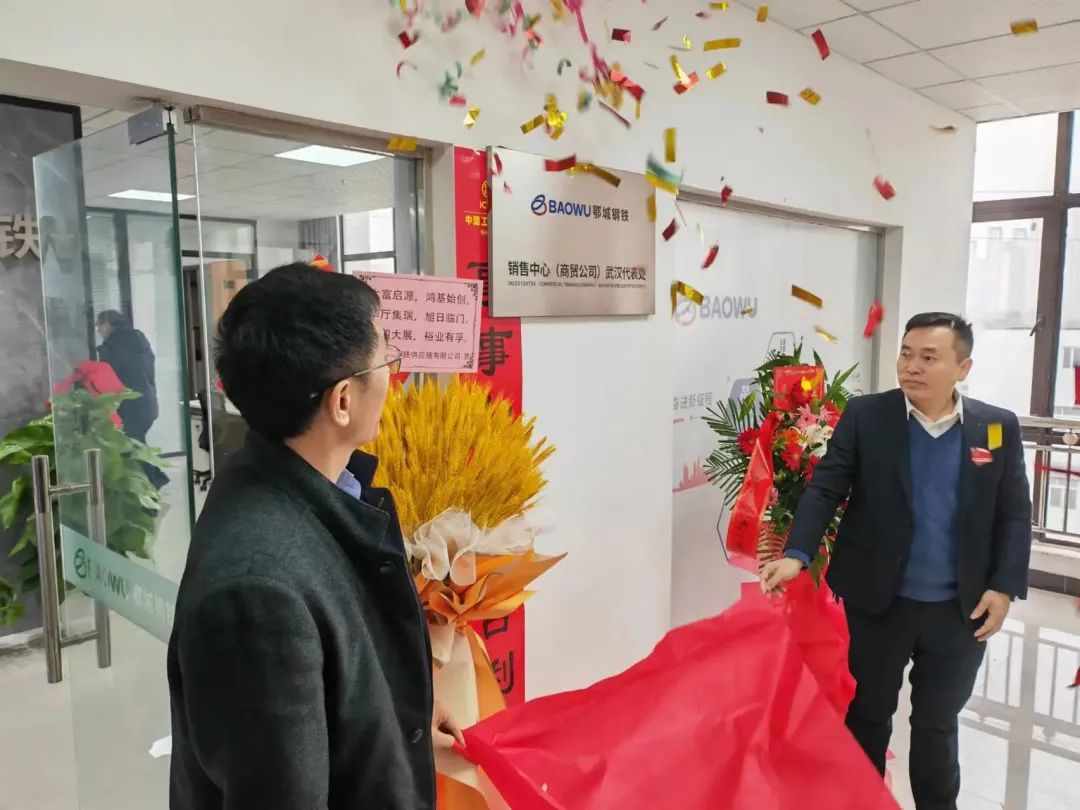 會前,黃大軍為銷售中心(商貿(mào)公司)駐武漢代表處揭牌。(胡楊楊/文 李亞非/圖)