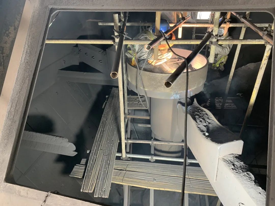 “這塊護板接頭處還有縫隙,沒有焊補到位”,工長張赟一邊從下料罐架子上下來一邊對中冶寶鋼的專業(yè)人員說道。正是李曉凡、張赟這些員工以及中冶寶鋼團隊的負責(zé)與細心,為后續(xù)的復(fù)風(fēng)和正常生產(chǎn)提供了有力的保障。