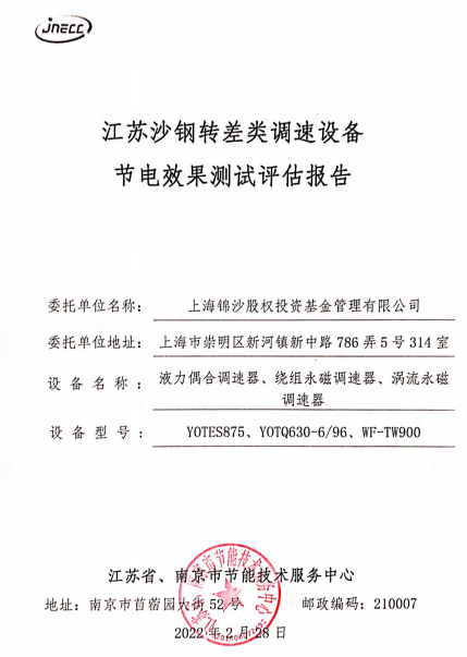 此前,上海錦沙股權(quán)投資基金管理有限公司委托江蘇省、南京市節(jié)能技術(shù)服務(wù)中心對(duì)江蘇沙鋼轉(zhuǎn)差類調(diào)速設(shè)備節(jié)電效果進(jìn)行了測(cè)試評(píng)估,評(píng)估的設(shè)備有:液力耦合調(diào)速器、繞組永磁調(diào)速器、渦流永磁調(diào)速器。