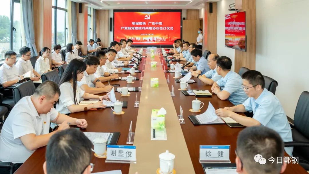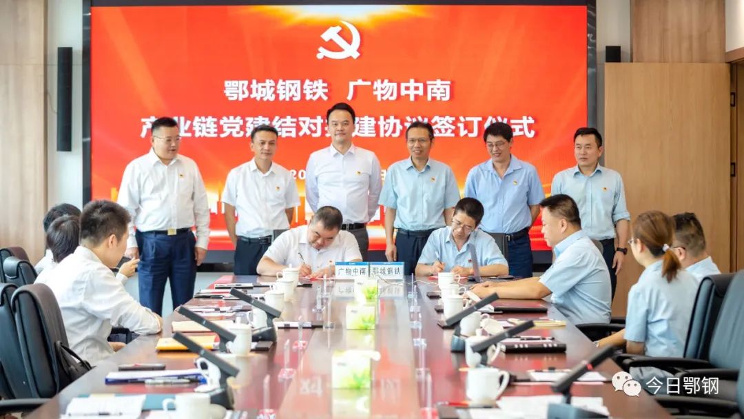 7月7日,鄂城鋼鐵與廣物中南產業鏈黨建結對共建協議簽訂儀式在鄂鋼舉行。鄂城鋼鐵黨委副書記(主持工作)、副董事長王虎祥,廣物中南黨委書記、董事長胡灝,黨委副書記、董事、總經理艾兵等出席簽約儀式。