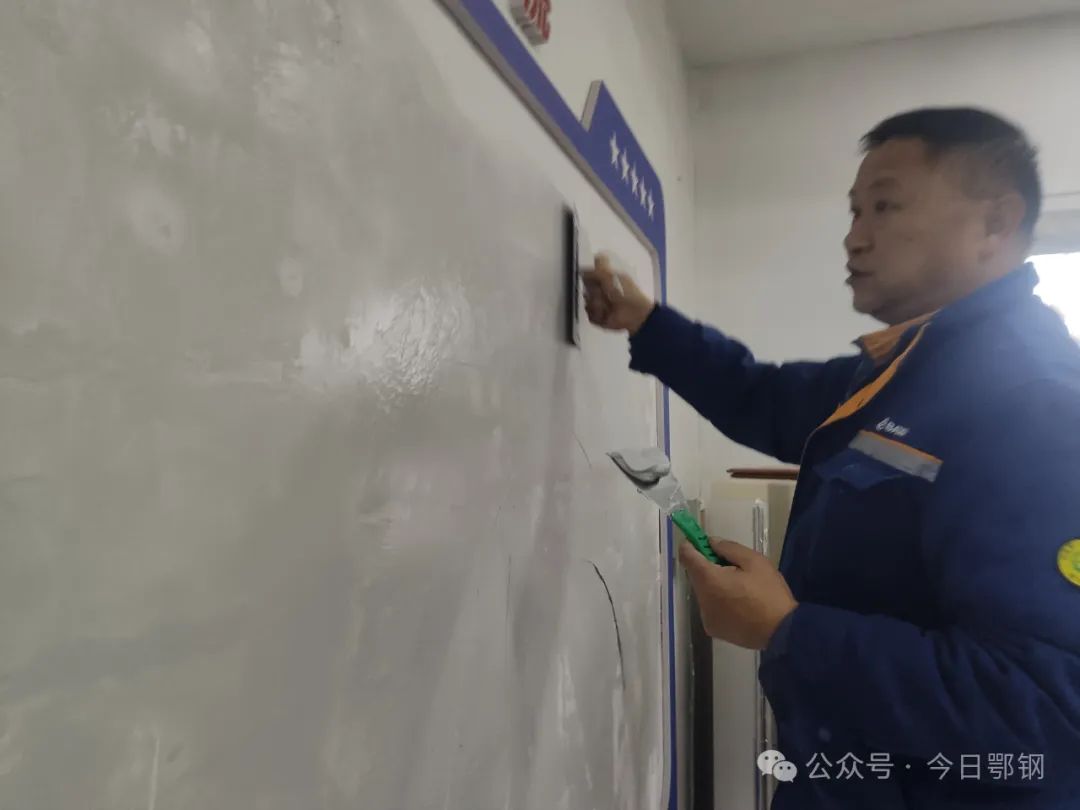 為改善黨員職工活動環境,車間對黨員活動室進行自主改造。秉承著“每一分錢都要較真”,從地面刷漆、墻面翻新,到電源線、網線的設計改造、文化墻安裝等,全部由車間職工自主完成。