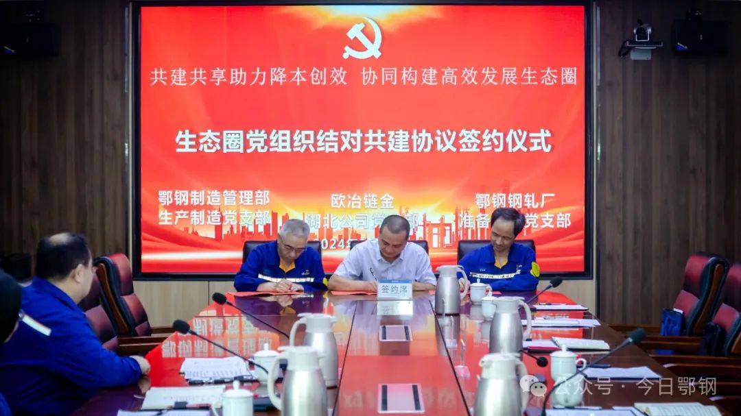 為進(jìn)一步鞏固拓展產(chǎn)業(yè)鏈創(chuàng)新鏈?zhǔn)痉?span>鏈創(chuàng)建成效,近日,鄂城鋼鐵公司制造管理部、鋼軋廠與歐冶鏈金湖北公司三方黨組織舉行生態(tài)圈黨組織結(jié)對共建簽約儀式。公司副總裁楊藝、黨委組織部相關(guān)負(fù)責(zé)人出席會議并見證三方共建簽約。