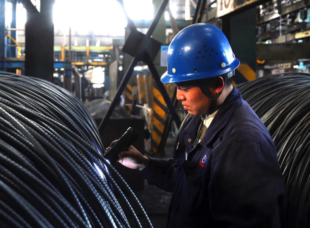 【方大九鋼公司軋鋼廠高線車間丁組值班長 李兵】這里是方大九鋼軋鋼廠高線車間,今天是大年初一,李兵早上八點鐘就來到這個現場,李兵的工作主要是負責各個環節運行流暢,保證貨物能夠及時送到工程項目上,在此祝大家新年快樂。