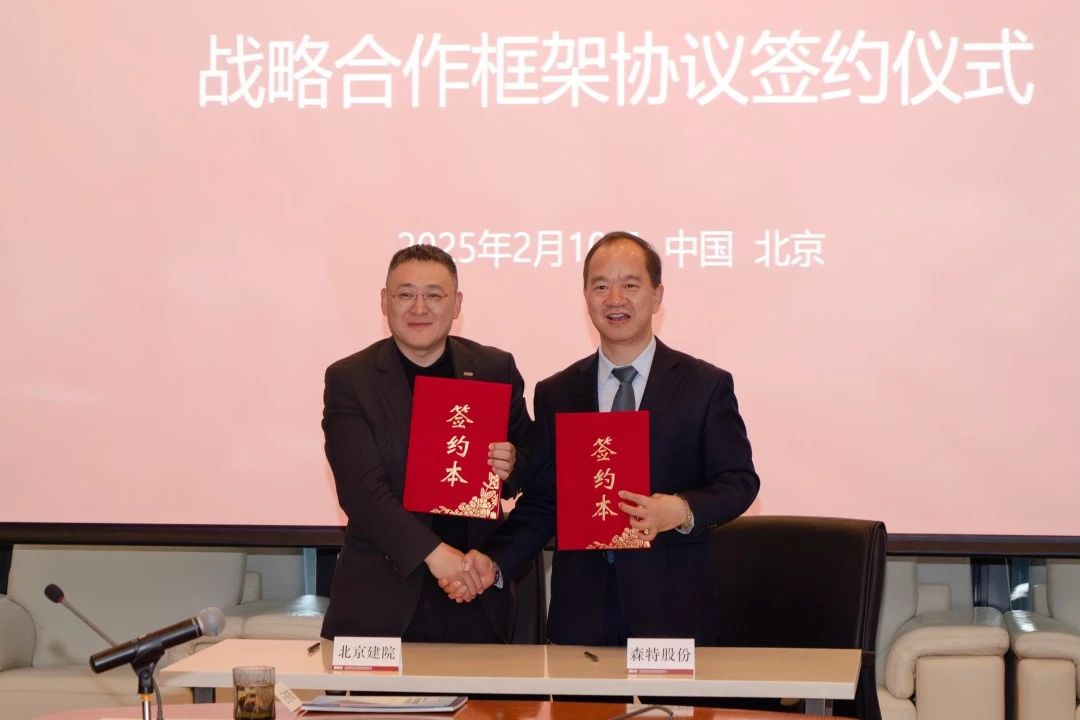 2025年2月10日,北京市建筑設計研究院股份有限公司(簡稱“北京建院”)與森特士興集團股份有限公司(簡稱“森特股份”)在北京建院總部舉行戰略簽約儀式。
