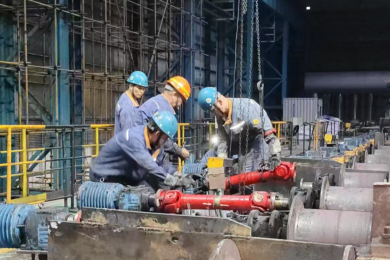 方案既定,行動(dòng)刻不容緩。在爭(zhēng)分奪秒的中修期間,檢修團(tuán)隊(duì)化身 “鋼鐵戰(zhàn)士”,一頭扎進(jìn)了改造工作中。現(xiàn)場(chǎng)焊花閃爍,錘聲此起彼伏,大家爭(zhēng)分奪秒,憑借嫻熟的技藝與十足的干勁,僅用一天時(shí)間,就順利完成了5臺(tái)減速機(jī)的拆卸與安裝,以及10套接手的拉拔與裝配。每一道焊縫都飽滿牢固,每一個(gè)部件都精準(zhǔn)就位,團(tuán)隊(duì)間默契協(xié)作,讓整個(gè)改造流程一氣呵成。最終,按時(shí)完成了任務(wù),給設(shè)備的穩(wěn)定運(yùn)行增添了一道可靠保障。這看似微小的改進(jìn),實(shí)則蘊(yùn)含著對(duì)生產(chǎn)效率的極致追求。