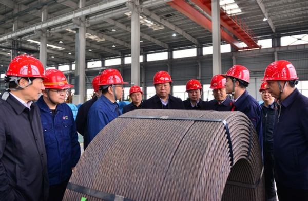 調研組一行先后視察了公司產業鏈延伸項目鋼絲鋼絞線生產基地和廢鋼回收加工基地,現場調研了公司燒結煙氣綜合治理項目、煉鋼生產工序。