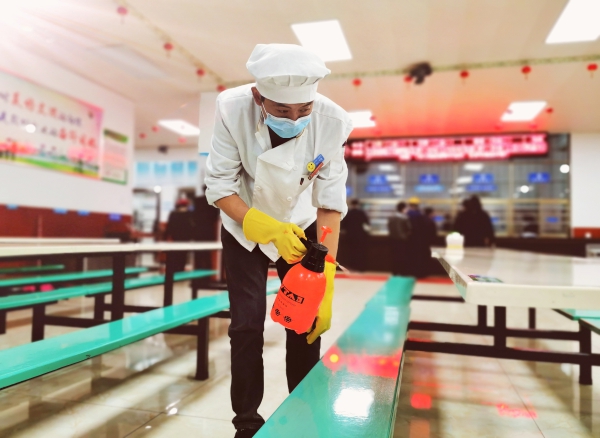 在春節前疫情還未大面積蔓延時,方大九鋼就已做好準備了,用庫存的消毒藥水進行了最初的防控。在員工食堂、宿舍、辦公樓等重點防控區域,后勤部門的員工背著消毒設備反復噴灑消毒藥水,及時清理各類垃圾。在企業機關以及廠區各大門外,由企業保衛部門組織的測體溫、登記、詢問等工作正有條不紊地進行著。