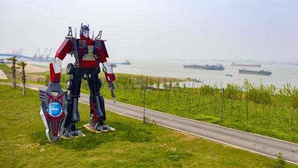 “最美岸線”包括周邊區(qū)域長度3600米、面積18.25萬平方米防洪堤壩及2.9萬平方米濕地,岸線上清風(fēng)徐徐、綠草如茵,棕櫚等各種喬木迎風(fēng)舒展。來到“最美岸線”,既可欣賞“春來江水綠如藍(lán)”的美景,又可感受“一江春水向東流”的悠遠(yuǎn)意境,更情不自禁對十里鋼城的巨大變遷和勤勞奮斗的鋼鐵工人心生贊嘆?!伴L江守護(hù)俠”矗立在“最美岸線”上,西連“彩虹橋”,北臨“瞭望塔”,與周邊天水一色相得益彰。該鋼鐵機(jī)器人由企業(yè)員工自主設(shè)計(jì)并利用廢舊鋼板、輪胎等物資制作完成,高9米,寬8米,魁梧身軀紅藍(lán)相間,面龐英氣十足、雙目炯炯有神,左手持“盾”、右手拿“斧”,身穿鎧甲、威風(fēng)凜凜,“守護(hù)俠”夜間全身還會散發(fā)璀璨燈光,寓意守護(hù)長江一岸翠綠與一江春水。鮮艷的色彩、獨(dú)特的造型既蘊(yùn)含濃厚的鋼鐵文化氣息,深刻的寓意又展現(xiàn)出鋼鐵工人的工匠精神,顯示了守護(hù)長江的鋼鐵力量,彰顯了方大九鋼人推進(jìn)綠色發(fā)展的堅(jiān)定意志和堅(jiān)強(qiáng)決心。