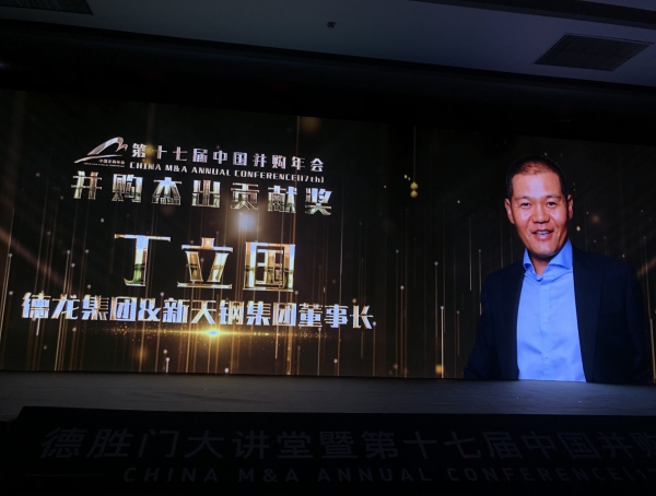 在9月19日召開的德勝門大講堂暨第十七屆中國并購年會上,德龍集團、新天鋼集團董事長丁立國被授予并購杰出貢獻獎。本屆年會由全國工商聯主辦,全聯并購公會承辦。