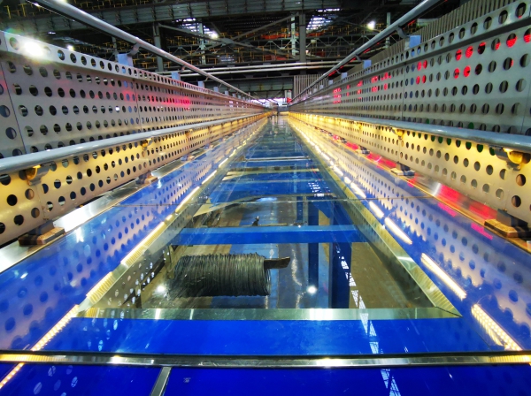 外出旅游,很多人都會選擇到“網紅地”打卡。比如久負盛名的婺源彩虹橋、張家界玻璃棧道等。然而就在不久前,該公司軋鋼廠也特別打造了一條“玻璃棧道”,在高速線材PF鏈區域,游客可以透過明亮的玻璃,直觀看到腳下運轉中的PF鏈,以及掛在C型鉤上已經打包好準備入庫的線材成品。這樣全新的沉浸式體驗,讓游客在直觀感受鋼鐵企業火熱、有序的生產氛圍的同時,更增添了工業旅游的豐富性與新奇感。