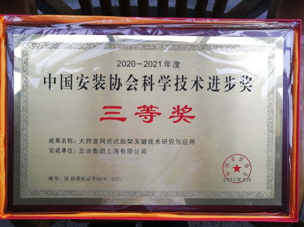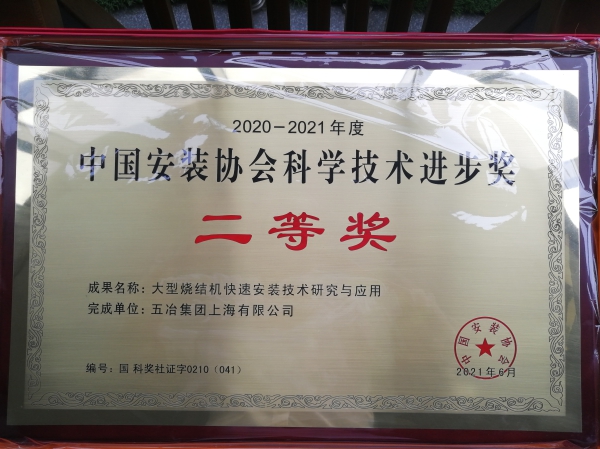 6月24-25日,中國安裝協(xié)會第六屆科學(xué)技術(shù)委員會會議江蘇省南京市召開,會上頒布了2020-2021年度中國安裝協(xié)會科學(xué)技術(shù)進(jìn)步獎名單,由中國五冶集團(tuán)工程總承包公司推選的《大型燒結(jié)機(jī)快速安裝技術(shù)研究與應(yīng)用》榮獲二等獎,《大跨度網(wǎng)殼式胎架關(guān)鍵技術(shù)研究及應(yīng)用》榮獲三等獎。
