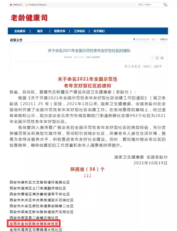 2021年全國示范性老年友好型社區(qū)