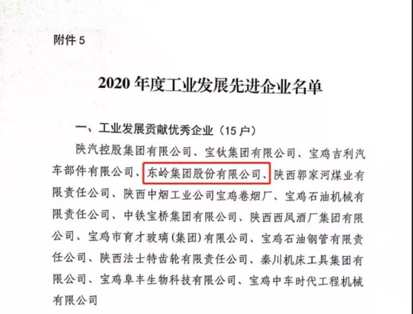 2月20日,寶雞市2020年度目標(biāo)責(zé)任考核暨招商引資大項(xiàng)目表彰大會(huì)在寶雞大劇院召開,東嶺集團(tuán)榮獲寶雞市“2020年度工業(yè)發(fā)展貢獻(xiàn)優(yōu)秀企業(yè)”和“2020年度工業(yè)企業(yè)納稅先進(jìn)企業(yè)”兩項(xiàng)殊榮。