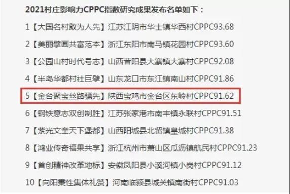 12月4日,由中商情報(bào)網(wǎng)、中商產(chǎn)業(yè)研究院鄉(xiāng)村振興研究中心、天下口碑?dāng)?shù)據(jù)庫、村莊影響力專家組聯(lián)合結(jié)題并發(fā)布《2021村莊影響力CPPC指數(shù)》研究成果,東嶺村榮膺榜單,位列全國第五,西部第一。