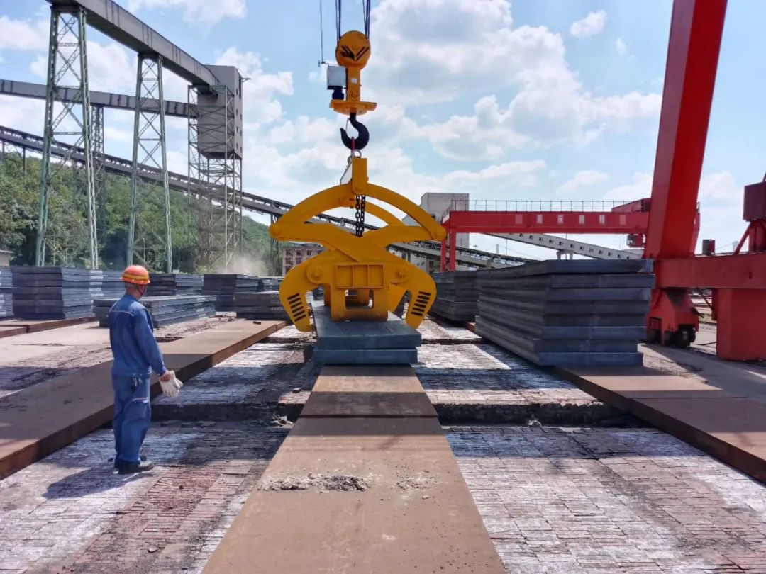 從工模具方面,物流運輸部專門訂購了兩榀鋼坯專用夾具、旋轉吊具,并為碼頭庫5號、6號行車加裝了隔熱層。因熱鋼坯專用夾具不同于其他常見夾具,其作用是固定熱坯,確保吊運過程中不擺動、旋轉、傾斜,能夠快速、準確地定住熱坯,大大節約了轉運時間,提高了作業安全性。