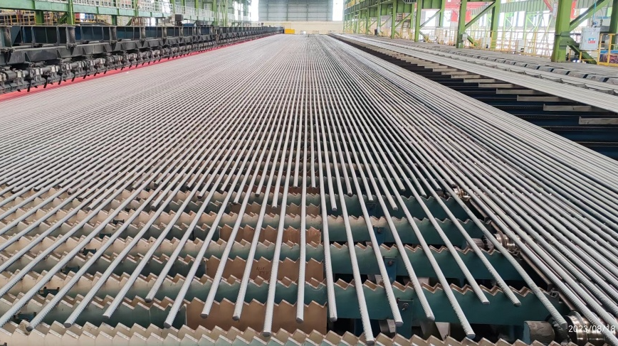 公司針對大規格鋼筋產品壓縮比小、晶粒度粗大、屈服強度和尺寸控制等難點問題,制定詳細的試驗方案;產銷研團隊結合產線裝備及生產實際情況,優化煉鋼成分設計,同時提煉煉鋼軋鋼工藝要求和細化工藝操作要點,形成包含軋制工藝、控制要點、生產組織等內容全面的軋制方案。經過一系列準備工作、周密部署,8月17日,第一條Φ36mm螺紋鋼成功上冷床。
