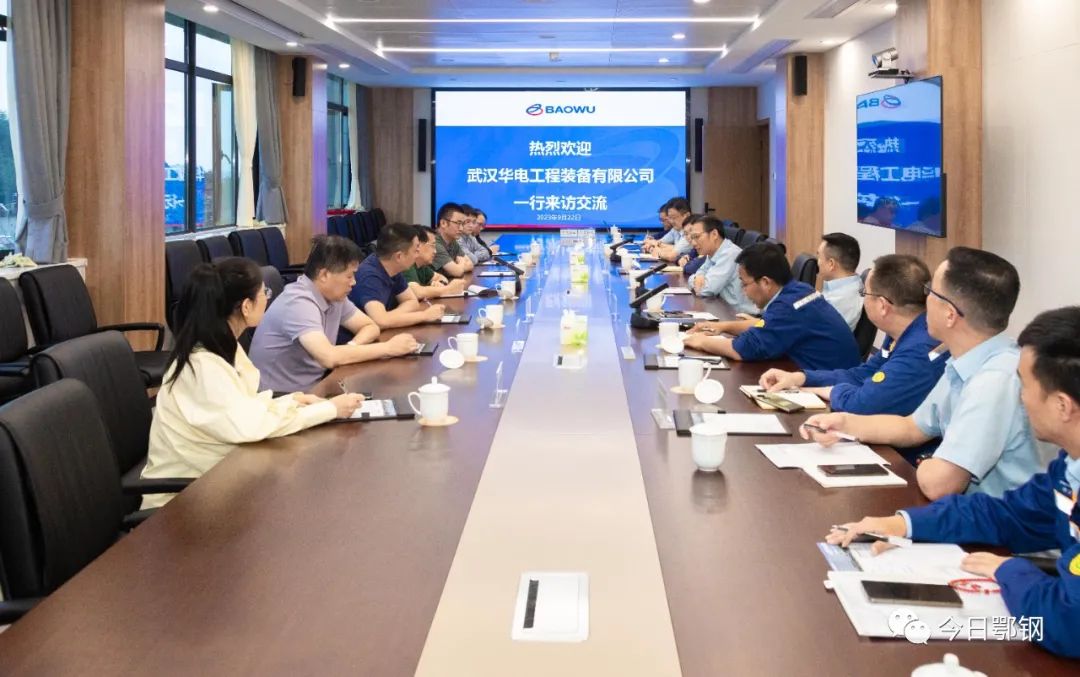 9月22日,武漢華電工程裝備有限公司黨委書記兼總經理劉尚君,副總經理謝歡一行來訪鋼,該公司領導王虎祥、黃大軍熱情接待,雙方簽訂了年度合作協議,就進一步建立戰略合作關系進行深入座談交流。