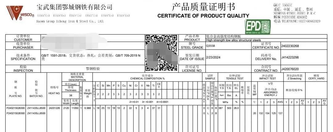 鄂城鋼鐵公司產(chǎn)品質(zhì)保書添加“EPD”環(huán)保認(rèn)證啦~