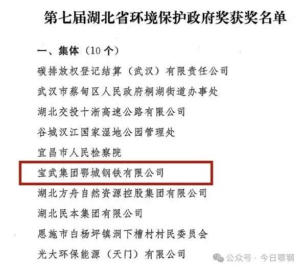 先后榮獲“綠色工廠”“全國(guó)節(jié)能先進(jìn)企業(yè)”“清潔生產(chǎn)環(huán)境友好型企業(yè)”“全國(guó)綠化先進(jìn)企業(yè)”、國(guó)家3A級(jí)旅游景區(qū)等榮譽(yù)。2023年,鄂鋼獲評(píng)為重污染天氣企業(yè)績(jī)效評(píng)價(jià)A級(jí)企業(yè),是湖北省第一家被評(píng)定為A的鋼鐵長(zhǎng)流程企業(yè),得到了集團(tuán)、地方政府和社會(huì)各界的廣泛認(rèn)可。