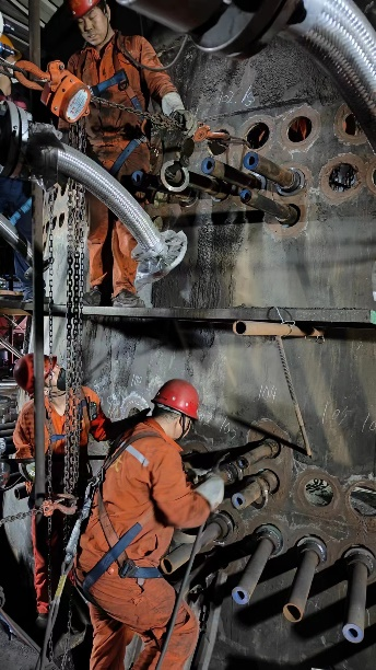為打造精品檢修工程,聯合榮大成立了以王行偉為項目總指揮的現場管理機構。現場項目部精心組織、科學調度集團資源,組織參戰人員350余人,現場管理人員12人,專職安全管理人員6人;制定施工專項方案20個,施工預案6個,安全專項管控方案5個;施工期間召開內部項目會議70多次,專項施工節點會議12次。
