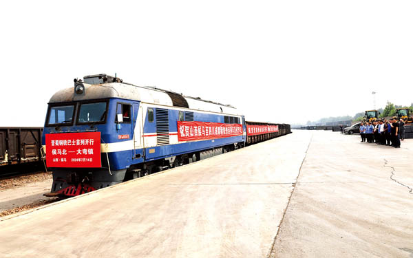 中國鐵路太原局集團有限公司太原鐵路物流中心總經理宋俊芳,晉南鋼鐵集團經營副總裁助理李小勇等出席開行儀式。 (丁衛國)