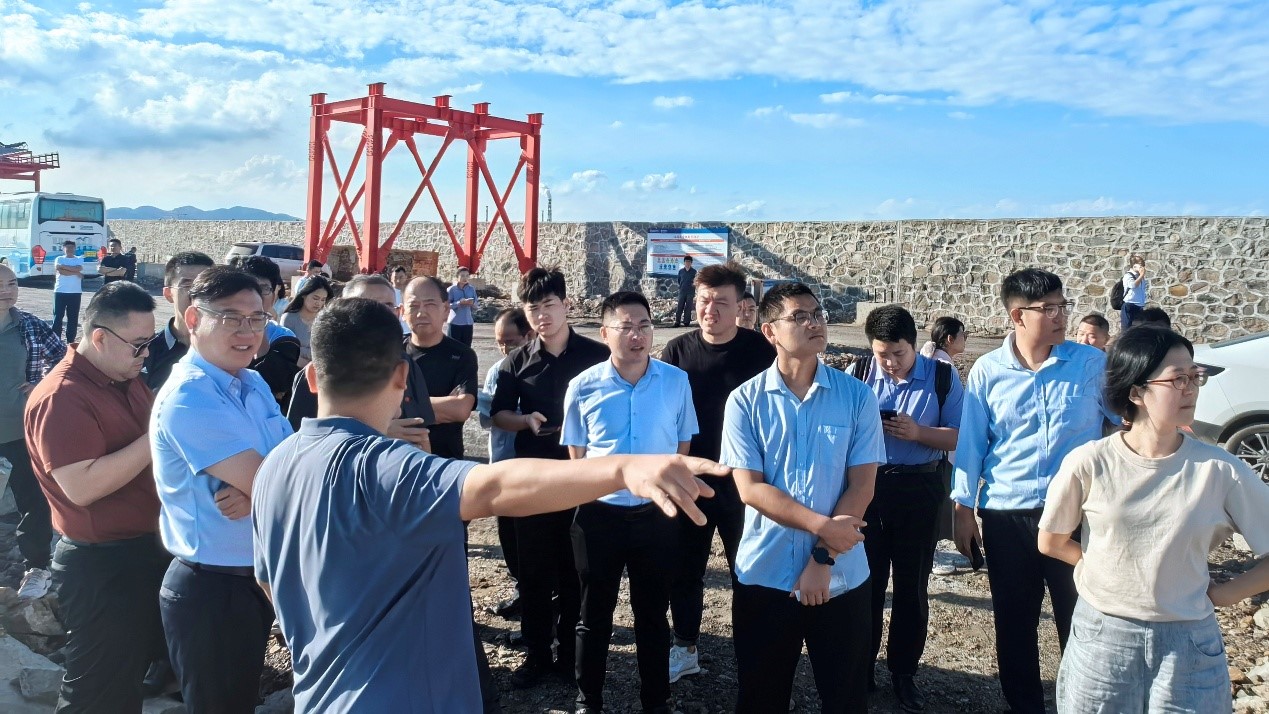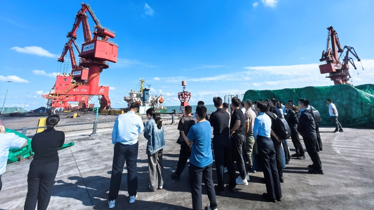 隨后,大家來到正在建設中的原料碼頭,該碼頭設計年接卸能力達2070萬噸,鐵礦石將通過傳輸帶直接進入鋼廠,實現“前港后廠”的高效運作模式。