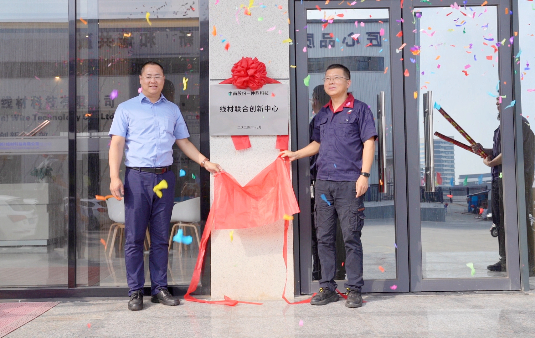 10月15日,寶武集團中南股份與仲鼎科技“線材聯合創新中心”揭牌儀式在韶關市仲鼎線材科技有限公司舉行。中南股份副總裁朱興安和仲鼎科技總經理馬仲富為聯合創新中心揭牌。