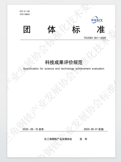標(biāo)準(zhǔn)編號(hào)及名稱如下:T/DASIV 001-2025《科技成果評(píng)價(jià)規(guī)范》(英文名稱Specification for science and technology achievement evaluation )