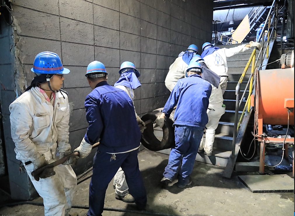 為了確保檢修作業(yè)萬(wàn)無(wú)一失,高爐北場(chǎng)爐底,公司領(lǐng)導(dǎo)深入到現(xiàn)場(chǎng),和檢修負(fù)責(zé)人一起關(guān)注著檢修動(dòng)態(tài)。