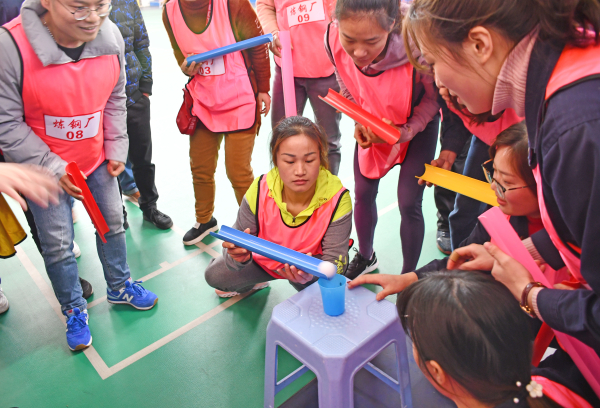 ——活動玩得很開心。在“三八”國際勞動婦女節(jié)前后,方大九鋼舉辦一系列有特色的趣味活動,如“攜手飛舞躍大繩”“團(tuán)結(jié)一家親綁腿跑”“逐夢奮進(jìn)珠行萬里”等,女工的業(yè)余文化生活充實、快樂,幸福感爆棚。