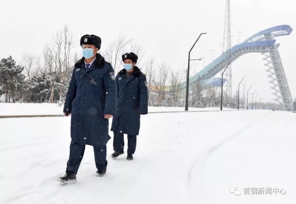 2月6日,北京大雪紛飛。首鋼園區(qū)被厚厚的積雪覆蓋,到處是白雪皚皚、銀裝素裹。一大早,在大雪紛飛中,首鋼新聞中心記者分兩組走進(jìn)園區(qū)各路口、場館、辦公區(qū)域等一線值守崗位。上午9點(diǎn)半,記者來到園區(qū)北區(qū)晾水池南路路口,看到園區(qū)管理部安保處警衛(wèi)隊(duì)隊(duì)員正在風(fēng)雪中值守,警衛(wèi)隊(duì)隊(duì)員荀金強(qiáng)認(rèn)真核對檢查了記者的證件,他介紹說,所有駛?cè)雸@區(qū)的車輛和人員,都要嚴(yán)格檢查各類證件,必須做到細(xì)而又細(xì)、嚴(yán)而又嚴(yán)。