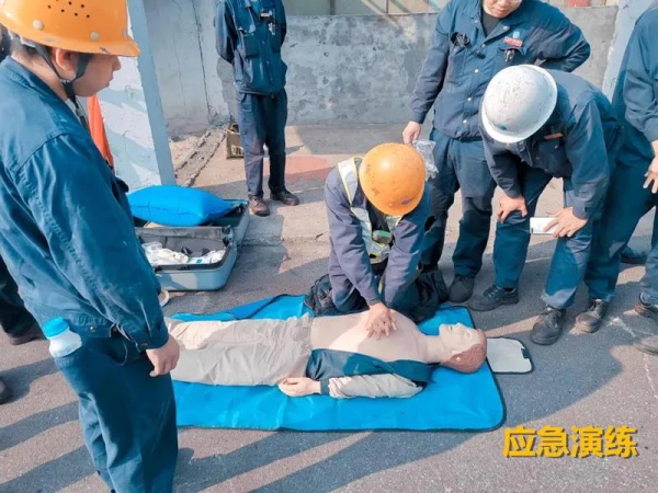 演練模擬該公司中板油庫門外油桶發(fā)生火情,現(xiàn)場人員馬上開始滅火并打電話向廠部匯報,廠部立即啟動應(yīng)急預(yù)案通知相關(guān)部門,隨即搶險救援小組開始佩戴空氣呼吸器進入火災(zāi)現(xiàn)場對暈倒人員進行搶救,對可能擴大火勢的物資進行轉(zhuǎn)運至安全區(qū)域,動力廠煤防站到現(xiàn)場對暈倒人員進行心肺復(fù)蘇搶救,保衛(wèi)部消防車到現(xiàn)場進行火災(zāi)現(xiàn)場封鎖、火情確認、確定撲救方法、鋪設(shè)水帶撲滅火災(zāi),并進行人員清點、損失統(tǒng)計。演練中每個步驟都井然有序。