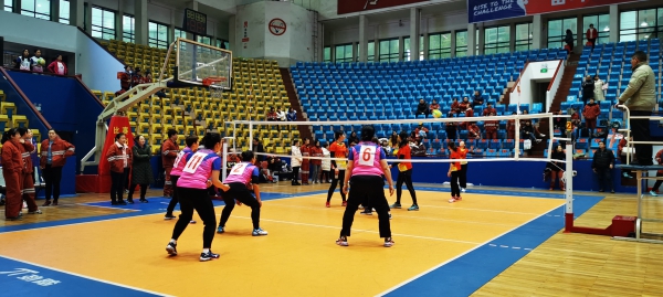啟動儀式后,由各個單位女職工組隊參加的“我奮斗,我健康,我快樂慶‘三八’女職工氣排球比賽”正式開始。