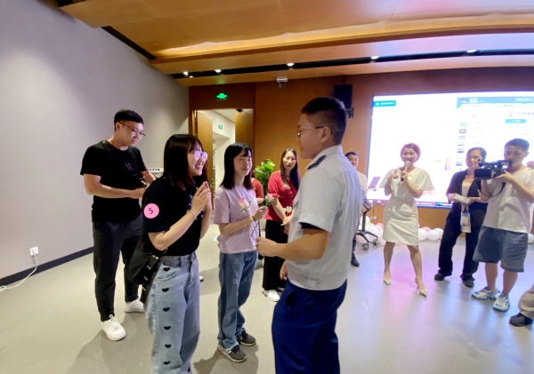 美妙的時光總是短暫的,最后到了激動人心的投票及牽手表白環節。根據男生女生互表感情投票,選出了最受歡迎心動男生、女生,并有3對青年男女當場成功牽手。甜蜜告白墻前,男嘉賓拿著手上的玫瑰,大膽地對心儀女生進行表白,“感謝公司搭建這么好的平臺,讓我認識了你,如果有機會,我想余生都是你。”臺下響起了熱烈歡快的掌聲。