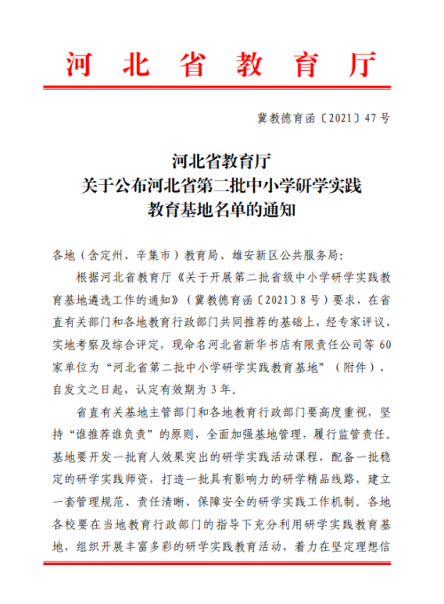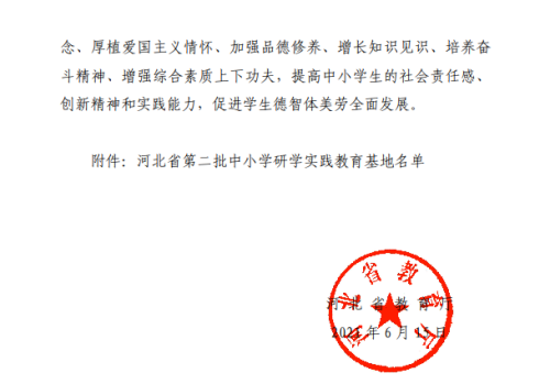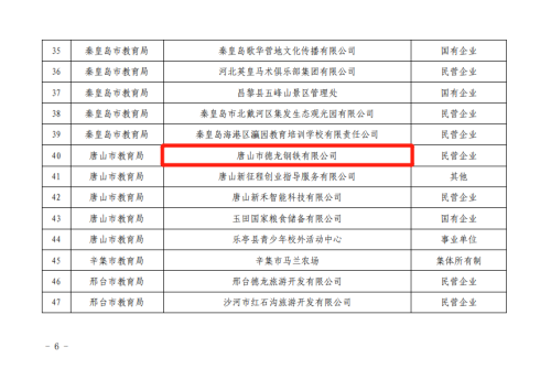6月15日,河北省教育廳公布《河北省第二批中小學研學實踐教育基地名單的通知》,唐山市德龍鋼鐵有限公司榜上有名!