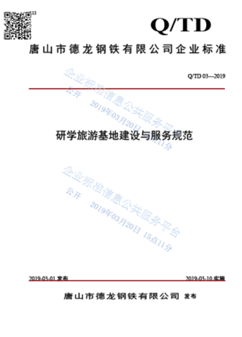 唐山德龍自2019年以來,一直致力研學事業的發展。憑借豐富的研學經驗,編制了《研學旅游基地建設與服務規范》企業標準,后又自主起草編訂了唐山市地方標準《鋼鐵工業研學旅行基地建設與服務規范》,為鋼鐵工業研學旅行基地建設和服務提供了技術依據,對提升鋼鐵工業研學旅行基地建設和服務水平、推動唐山市工業研學旅行健康發展具有重要意義,同時,也為行政主管部門開展鋼鐵工業研學旅行基地建設監管和規范化管理提供了技術依據和重要參考。