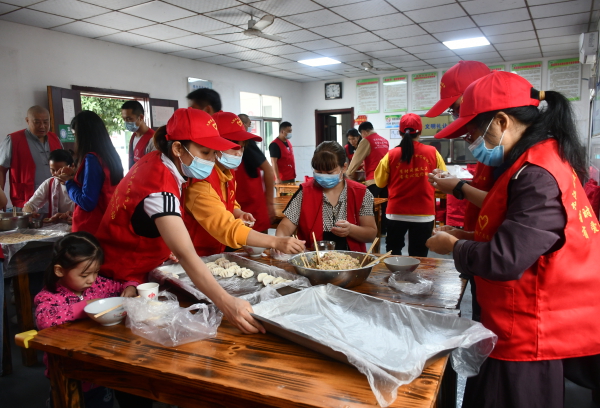 10點多,黃艷等人馬不停蹄來到了湖口縣大攏鄉敬老院,和九江市愛心義工聯的義工們一起為100多位老人們包餃子,提前共度重陽佳節。敬老院的廚房里,柴火燃起熊熊火焰,鍋中的熱水翻滾,騰起陣陣水汽,切菜、剁餡的聲音匯成了悅耳的交響曲,老人們坐在院子里喜笑顏開地看著義工們忙碌。經過兩個多小時,一個個圓鼓鼓、熱騰騰的豬肉白菜餡餃子出鍋了!老人們圍坐在一起,愜意地聊著天,享用著香噴噴的餃子。“好不好吃呀?”敬老院負責人周大姐笑著問到?!昂贸?!”老人們齊刷刷地豎起大拇指,現場響起了一片笑聲。整個敬老院里菜香彌漫、其樂融融,宛若過年一般熱鬧。老人們開心的笑臉、內心的歡喜令黃艷深受感染。她感慨地說:“重陽節來了,我們到敬老院來為老人們獻上一份愛心,也祝他們節日快樂,健康長壽!”
