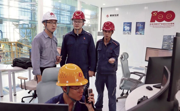 廣西鋼鐵冷軋廠與華為技術(shù)人員現(xiàn)場(chǎng)研討。