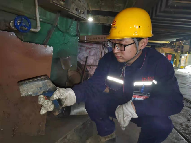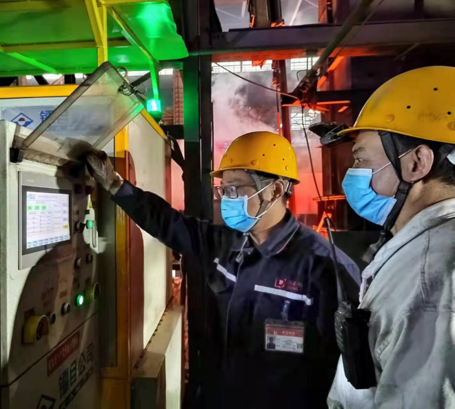 “老馮,你讓咱們職工,人工測一下鋼水溫度,我這和智能大屏上測溫機器人測溫顯示的溫度進行最后比對,確保溫度準確性,避免鋼水溫度誤差造成生產質量波動。”在煉鋼工序,我們找到了正在項目現場的王舉貴。