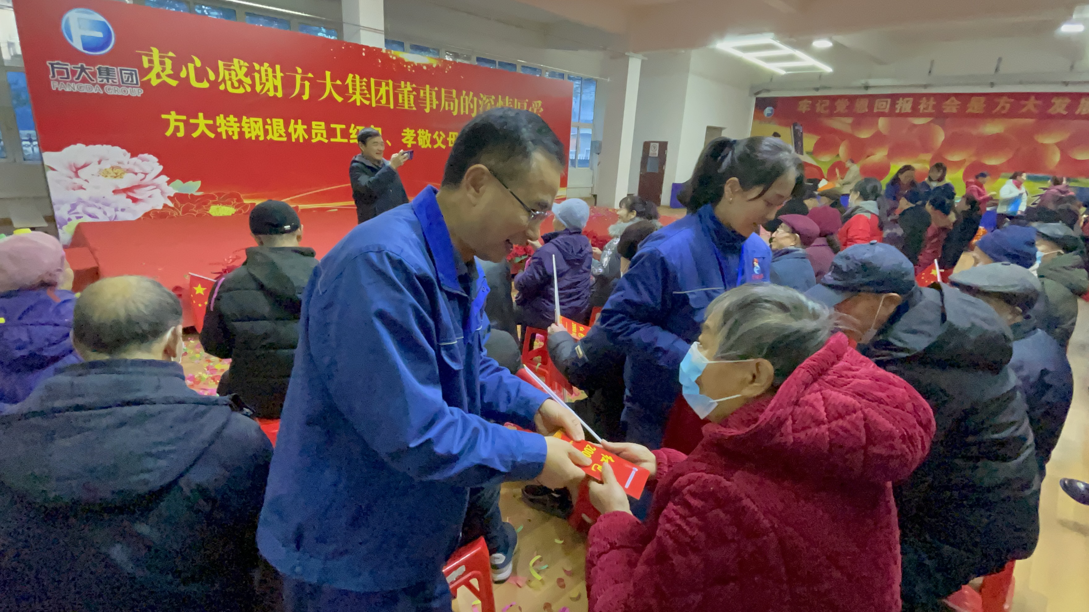 繼1月28日為符合條件的員工發(fā)放20000元紅包后,29日,方大特鋼在員工活動中心舉行儀式,為符合條件的離退休人員發(fā)放2000元紅包、為員工父母發(fā)放2000元孝敬父母紅包,讓為企業(yè)建設發(fā)展作出貢獻者,4400余名退休員工和5000余名員工父母共享企業(yè)發(fā)展成果。